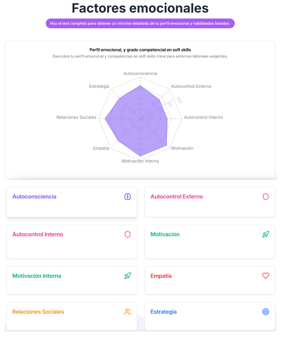 - Informe Extensivo de 8 páginas: Un análisis profundo de las competencias emocionales y habilidades blandas, con recomendaciones específicas para el desarrollo del candidato.